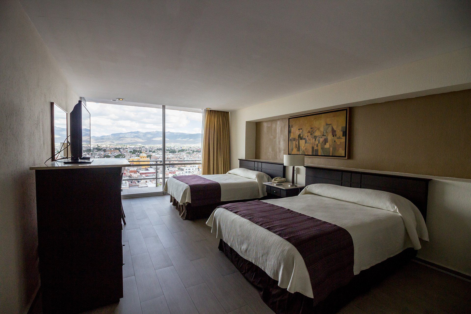 Room with two double beds with one of the best views of the city, the bedroom has a Jacuzzi with a view of the city, separate bathroom. Carpeted ideal for bridal packages.
